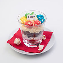 ポップコーン、カラーポップコーン、チョコスポンジ、カスタードホイップ、ホイップクリーム、塩キャラメルアイス、グラノーラ、チョコソース、塩キャラメルパウダー、もなか